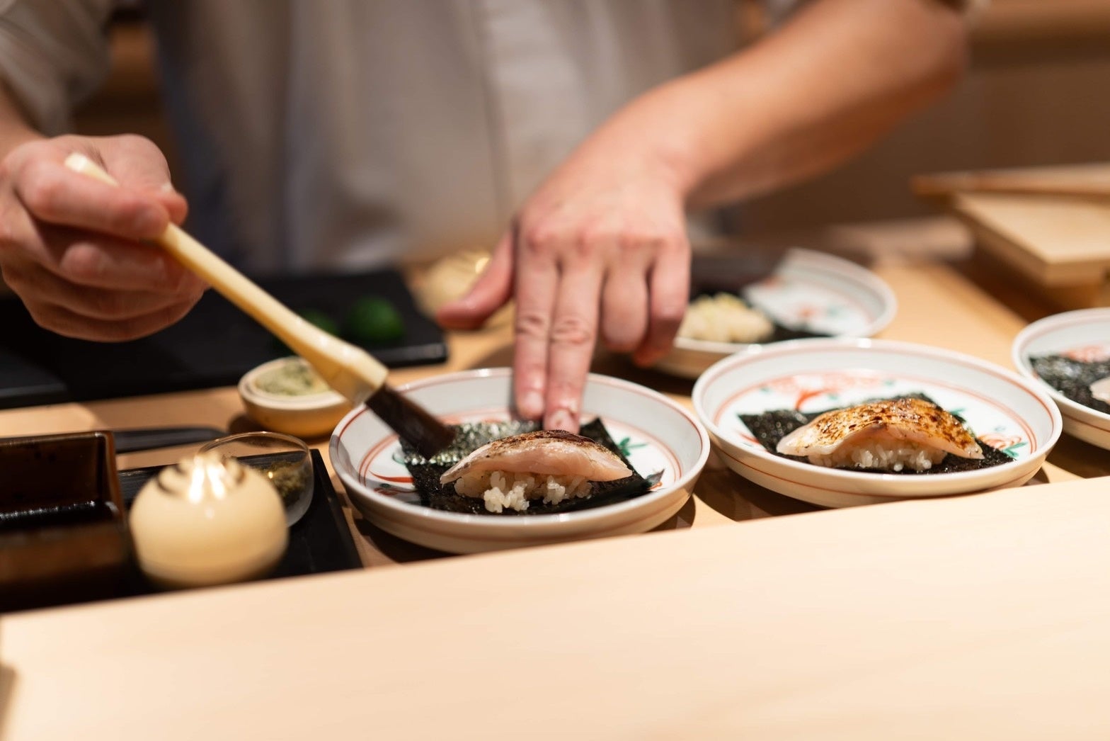 さらに、鮨の名店として名高い銀座「鮨あらい」、日本一の予約困難な店と言われる静岡県の天麩羅「成生」での修行経験あり。