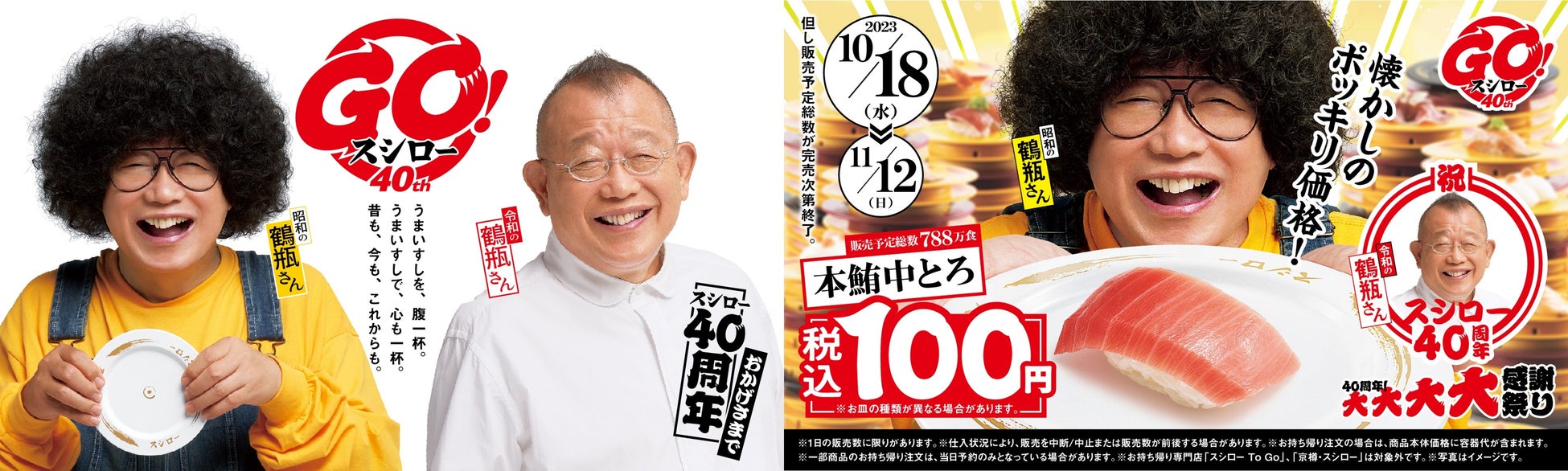 10月18日(水)からは、口の中でとろける脂とまぐろの旨みを堪能いただける「本鮪中とろ」が、全店“税込100円”で登場いたします。この商品は、昨今の物価上昇が続く中、“うまいすし”を少しでもお手頃にお腹いっぱい召し上がっていただきたい、という想いから仕入れ担当者が全力を尽くし実現しました。40周年の記念商品として、全国の皆さまに楽しんでいただけるよう価格帯が異なる都市型店舗・準都市型店舗・郊外型店舗で全店“税込100円”で販売いたします。この「本鮪中とろ」に続く、“税込100円”の商品は、12月末まで全国のスシローで展開する予定です。