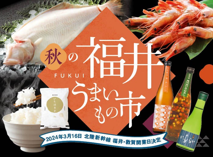 福井県のブランド米「いちほまれ」を筆頭に、自慢の地酒、伝統野菜、きれいな海で育った魚介類や愛され続ける銘菓など福井県の“うまいもの”がクイーンズ伊勢丹に大集合いたします。
