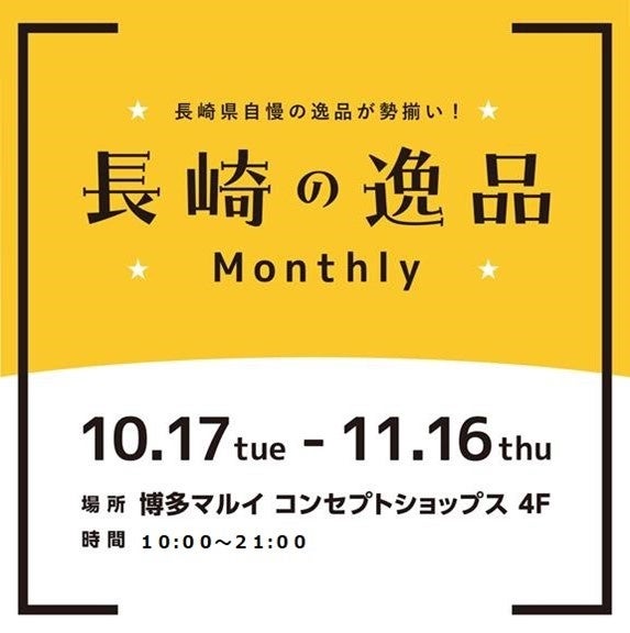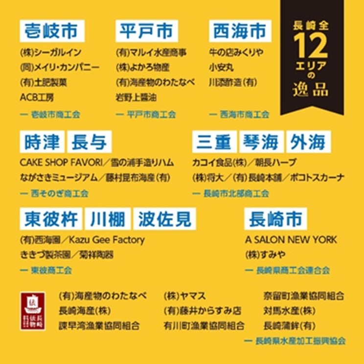 長崎県内の8つの団体(長崎市北部商工会・西そのぎ商工会・東彼商工会・壱岐市商工会・西海市商工会・平戸市商工会・長崎県商工会連合会・長崎県水産加工振興協会)の経営指導員が、地元事業者と二人三脚で育ててきた長崎自慢の品(食品・雑貨)を自信をもって紹介する期間限定催事です。