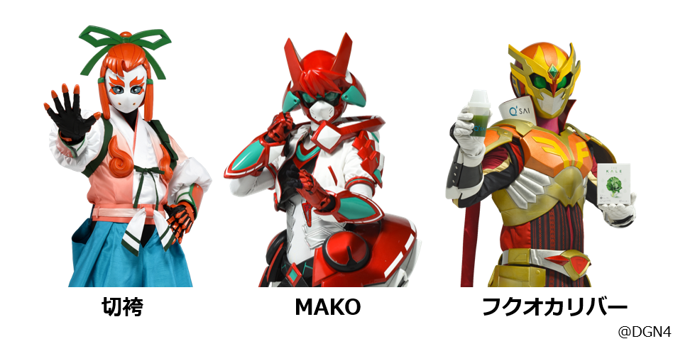 九州の“実在するヒーロー”達が集結して作られた、福岡初で福岡発の福岡を舞台とした本格特撮ヒーロー作品です。ふくやはオリジナルキャラクター「MAKO」「切袴」、キューサイは襟元にロゴを冠した「フクオカリバー」を中心にスポンサー企業として応援しています。