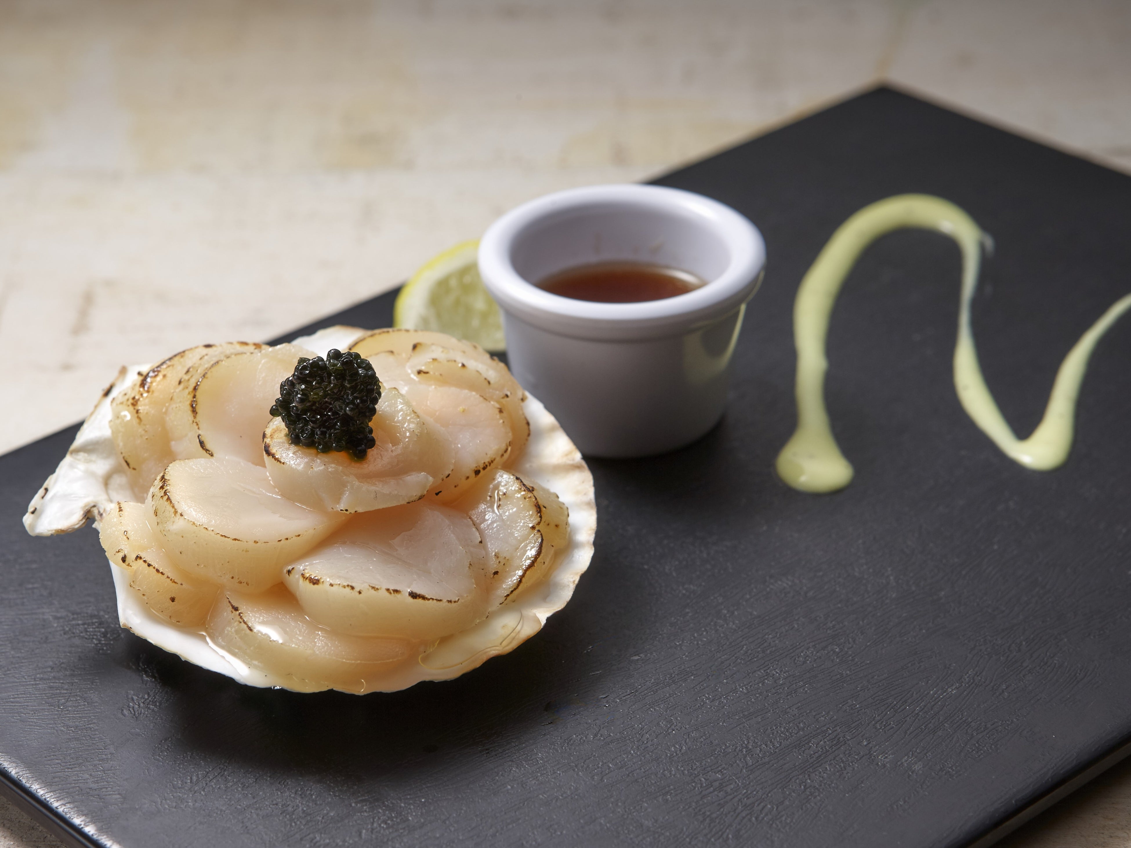 プリップリのホタテを炙ることで旨味を最大限に引き出しました。キャビアと一緒に食べれば口の中に広がる贅沢感…!お好みでトリュフ醤油とご一緒にどうぞ。