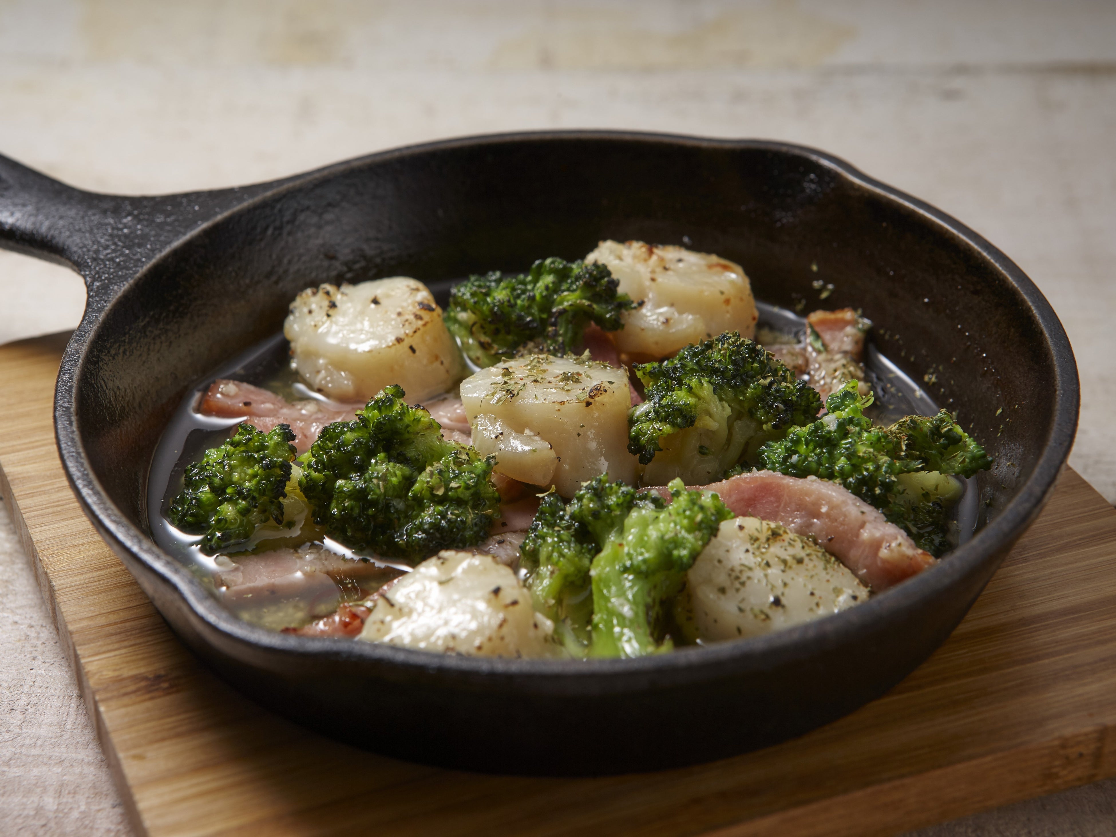 ごろっと入ったホタテが嬉しい!旨味を存分に味わえるアヒージョに仕上げました。白ワインと合わせるのがおすすめです。
