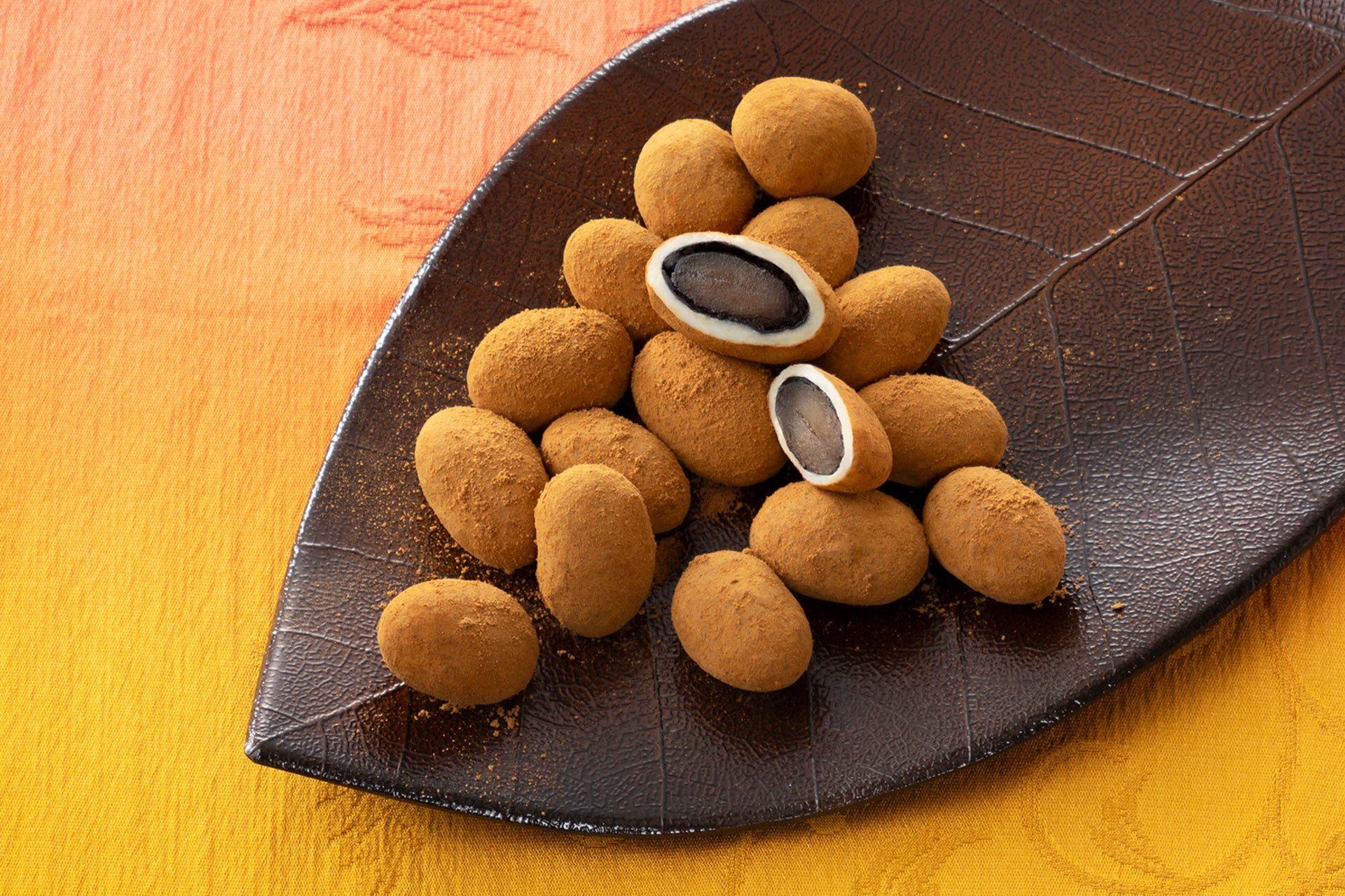 甘納豆仕立ての丹波黒大豆に、きなこチョコレートをコーティング。上品な甘さでお茶請けにぴったり。