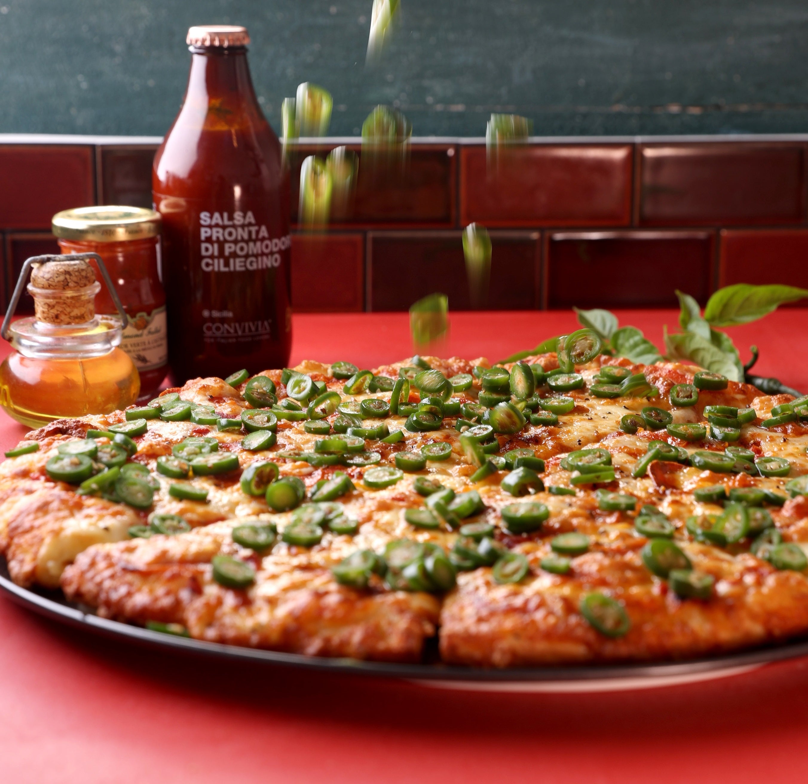サラミの旨みとセラーノペッパーの痺れる旨辛な美味しさはそのままご堪能いただける限界まで、挑戦いたしました。
