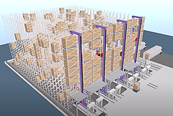 隣接する工場で生産された当社主力商品である「大阪王将 羽根つき餃子」をはじめとする製品の商品名、賞味期限、ロットなどの情報を、QRコードで管理・識別。システム、オペレーションを自動化し保管します。倉庫作業の大半を自動化することによって、庫内作業にかかる人員、ヒューマンエラーの削減にもつながります。関東ロジスティクスベースは、自然冷媒による冷凍庫棟として環境にも対応しております。併せて大型物流施設が完成することで計画生産を進めることができ、工場での廃棄ロスや機会ロスの削減にもつながります。