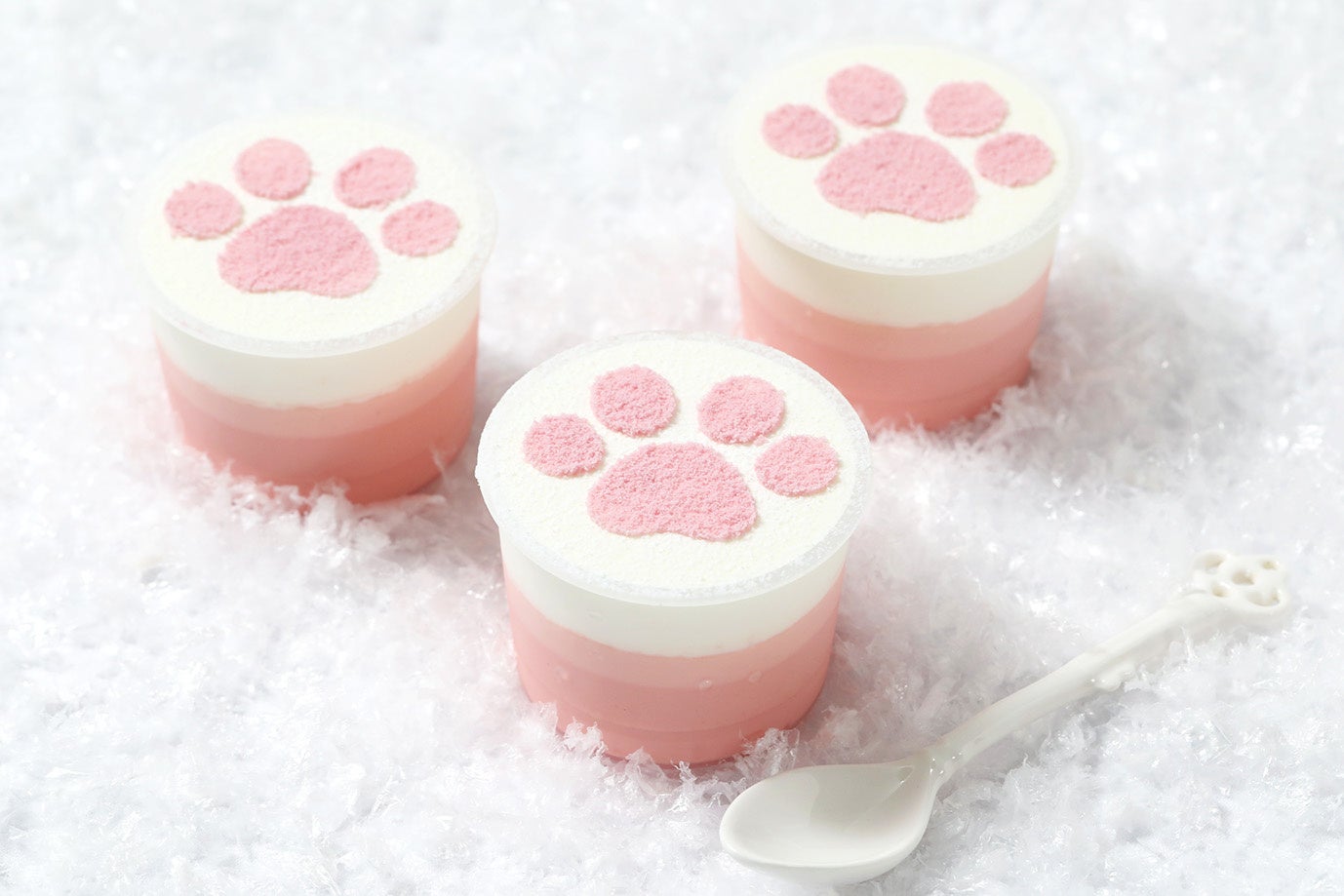 『Holiday’sニャめらかプリン(イチゴ)』は、『なめらかあまおうイチゴプリン』の上にホイップクリームを重ね、ピンク色の粉糖でねこの“にくきゅう”を描きました。