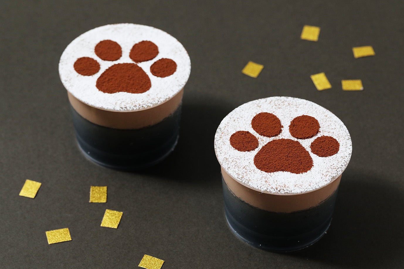 『ニャめらかブラックプリン』は、竹炭を加えた真っ黒なチョコプリンの上にチョコのホイップクリームを重ね、ココアパウダーでねこの“にくきゅう”を描きました。どちらもプリンの”ニャめらか”な食感をお楽しみいただけ