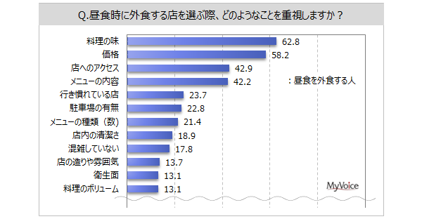 昼食時に外食する店を選ぶ際の重視点