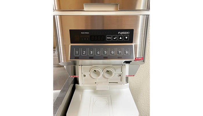 肉弁当では、自動炊飯器と自動飯盛機を導入。