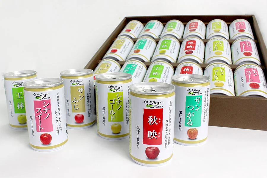 長野県産のりんごだけを使用した果汁100%のストレートジュースです。品種ごとに搾ったりんごジュースそれぞれの特徴ある風味を飲み比べてお楽しみください。