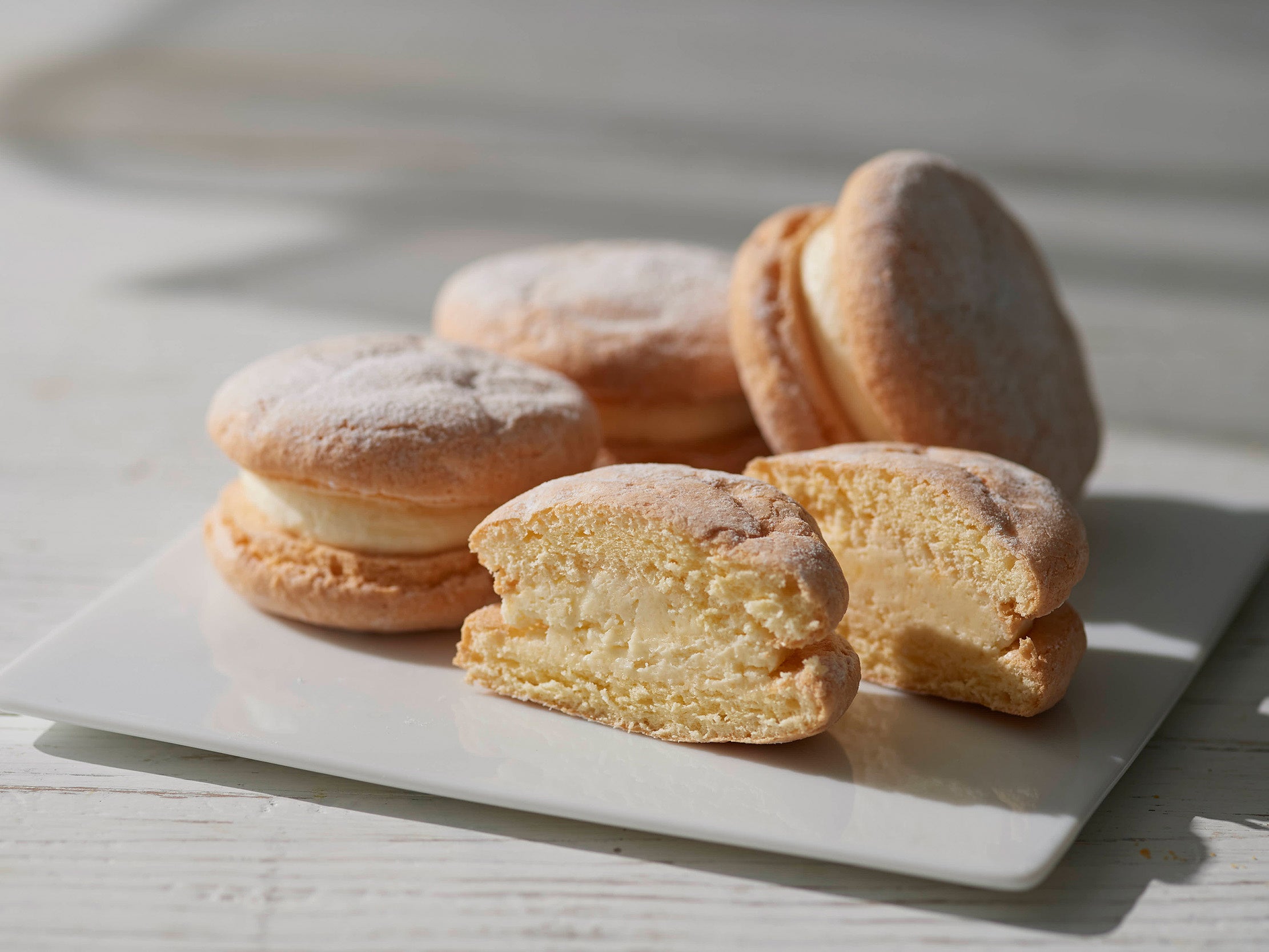 チーズとバタークリームの味わいが奥深いブッセスタイルのチーズサンドスイーツです。