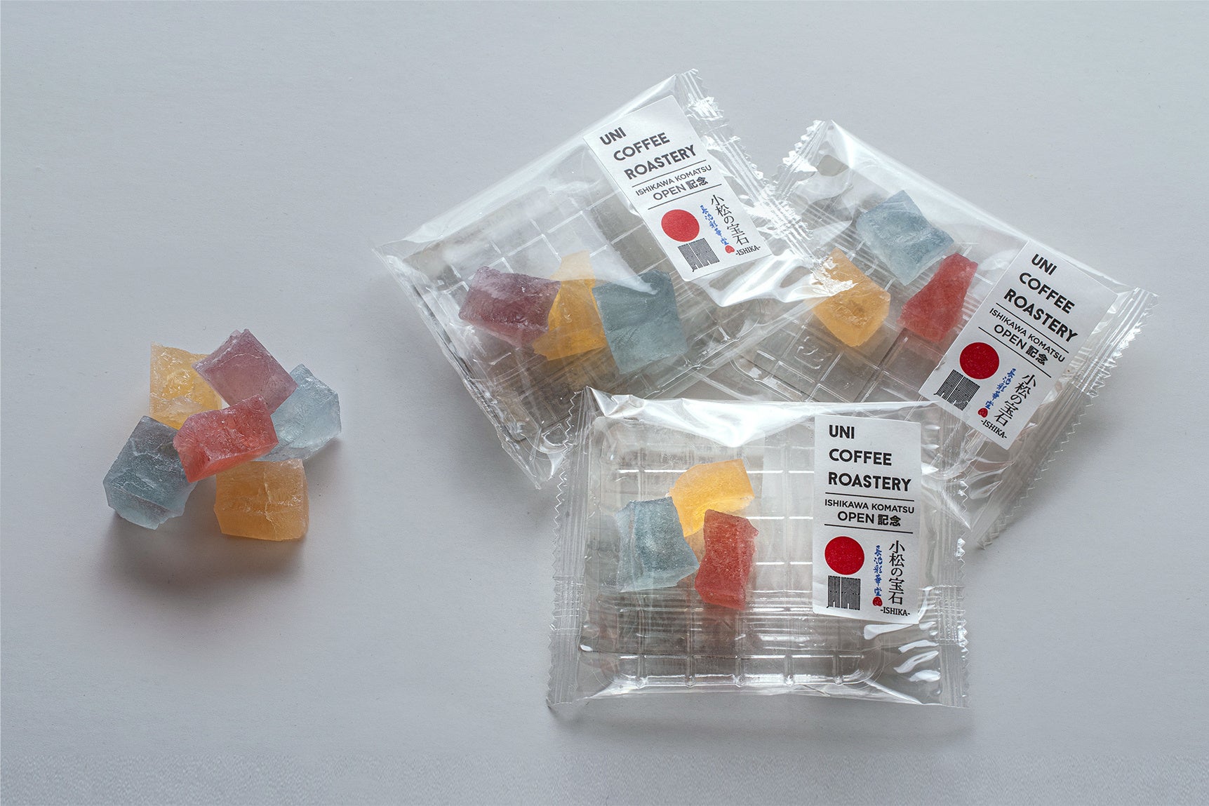 北陸初出店となる「UNI COFFEE ROASTERY 石川小松」が開業してから1か月が経過。予想を上回る多くの方に来店いただいております。その感謝を込めて、また、小松の魅力をお客様にお届けするために、石川小松店限定で提供している琥珀糖菓子「ishika」を無料配布するキャンペーンを対象店舗にて実施いたします。