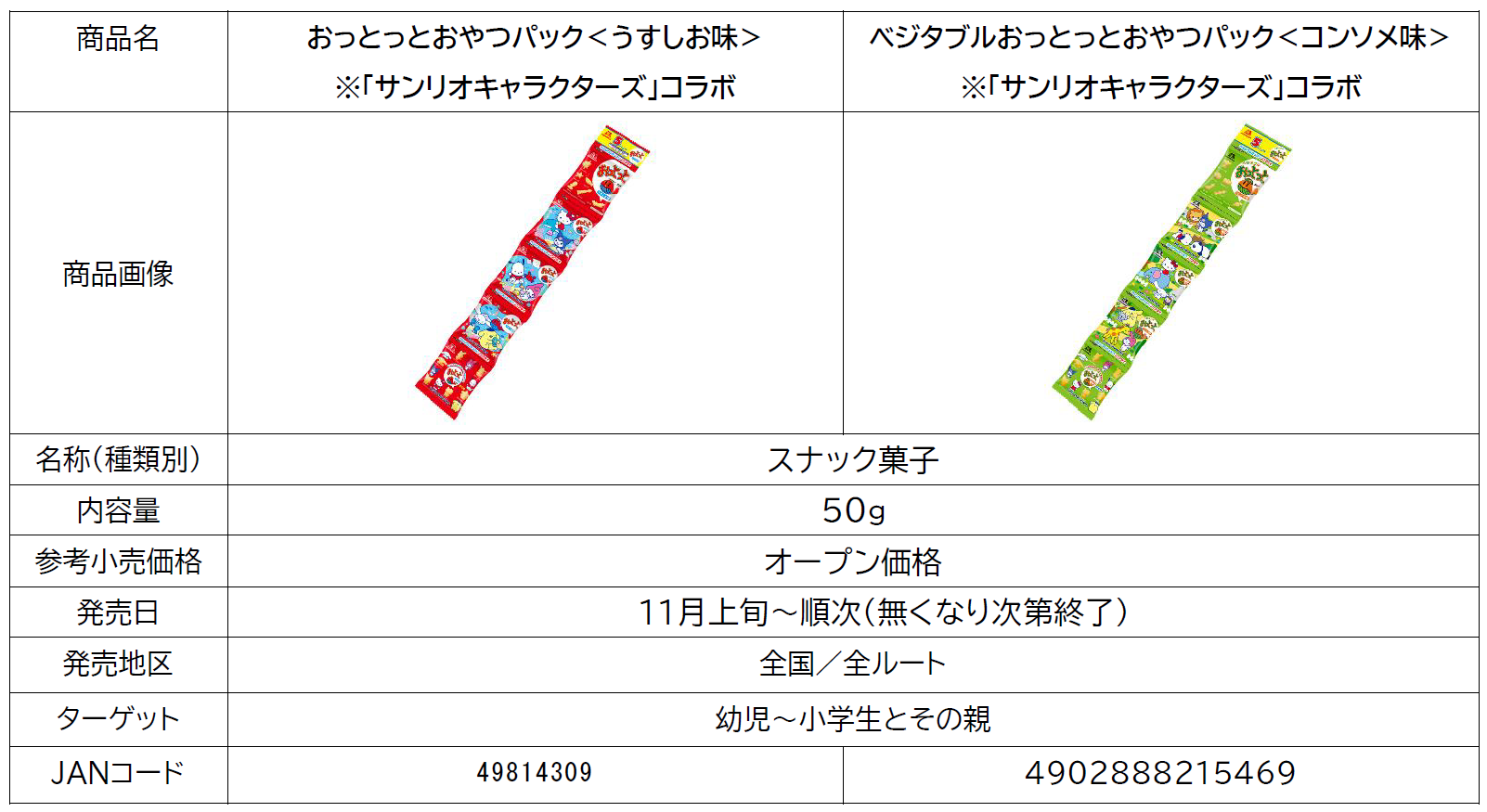 ■おっとっとの菓子型にサンリオの人気キャラクターが登場!