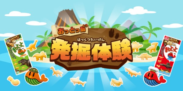 おっとっとに入っている「恐竜・古生物」の菓子型を探して、スマートフォンをかざして遊べるコンテンツ。