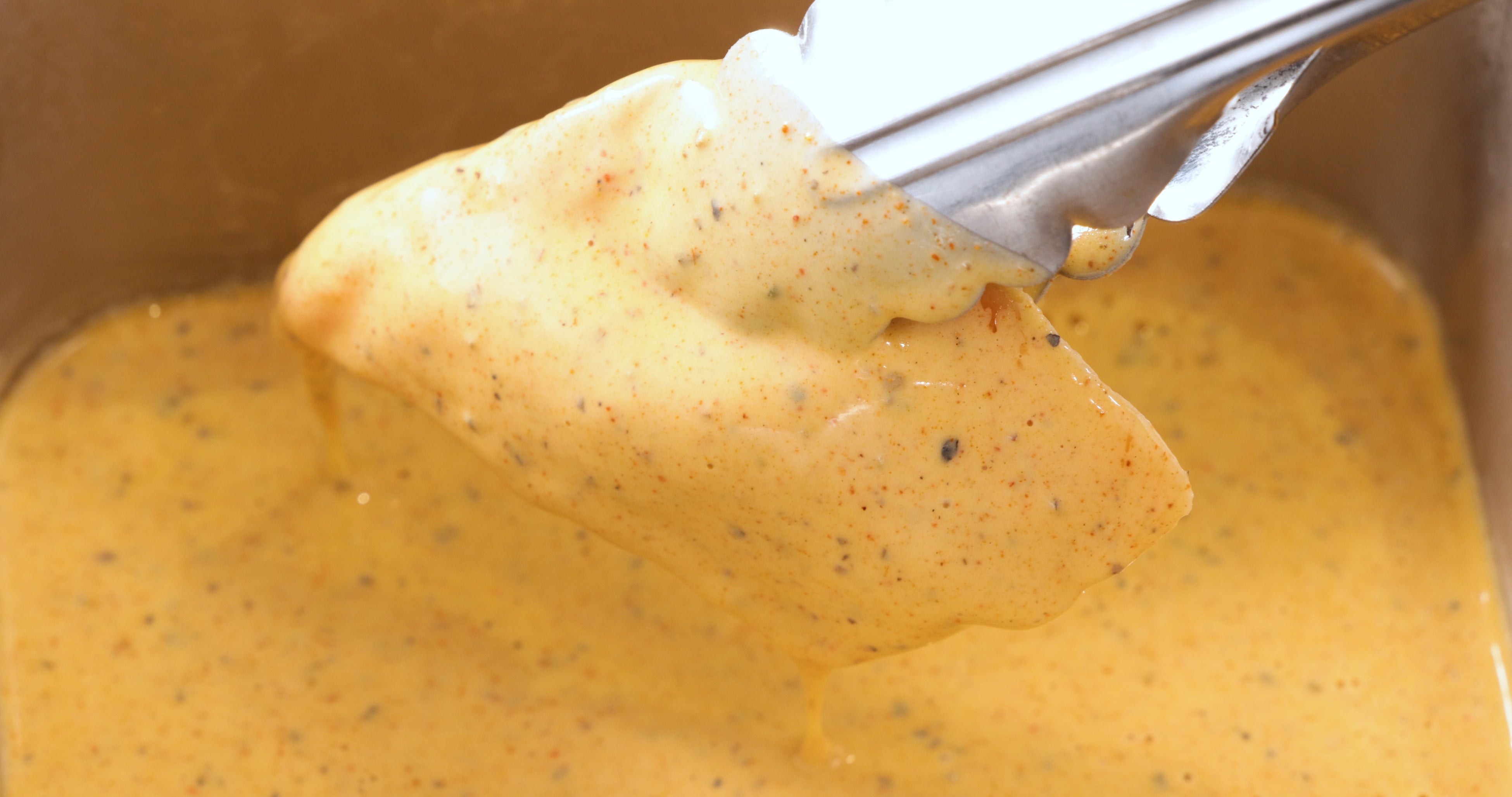 衣には、コリアンダー・バジル・メースなど8種のスパイスを配合し、香りが引き立ちます。