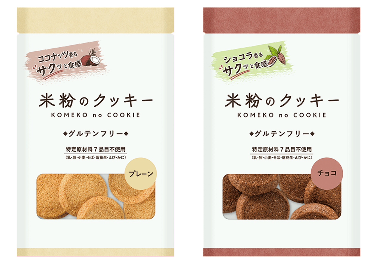 シリーズ商品として「米粉のクッキー(プレーン・チョコ)」も発売中。