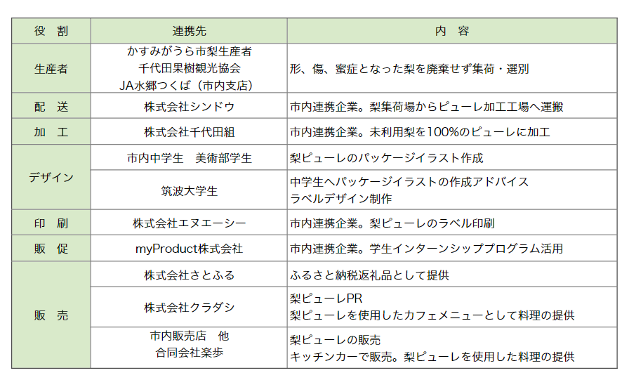 【かすみがうら梨ピューレプロジェクトの主な連携】