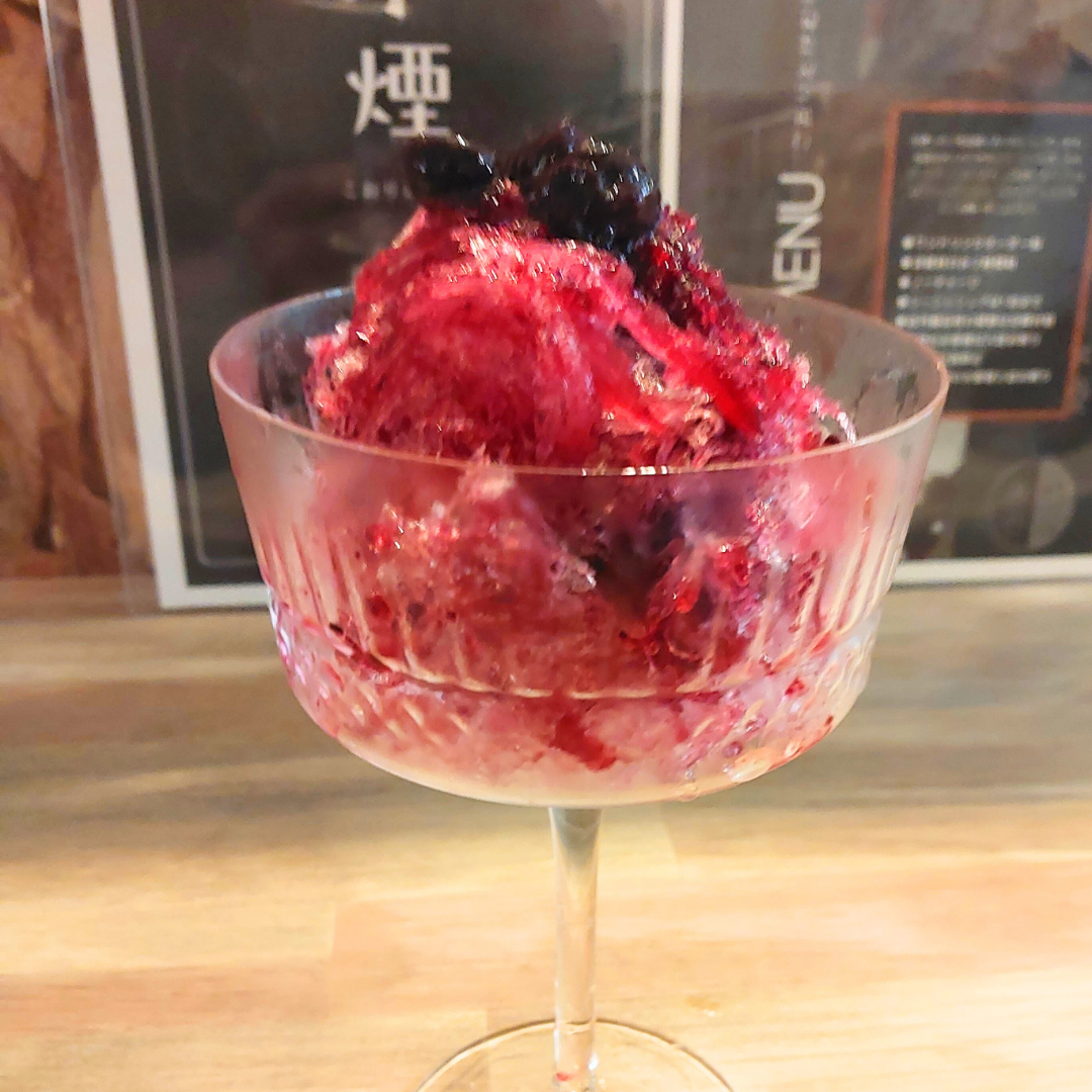 となっております。見た目も味もかき氷ですがアルコールが割と強いものもございますのでお酒に弱い方はご注意ください。