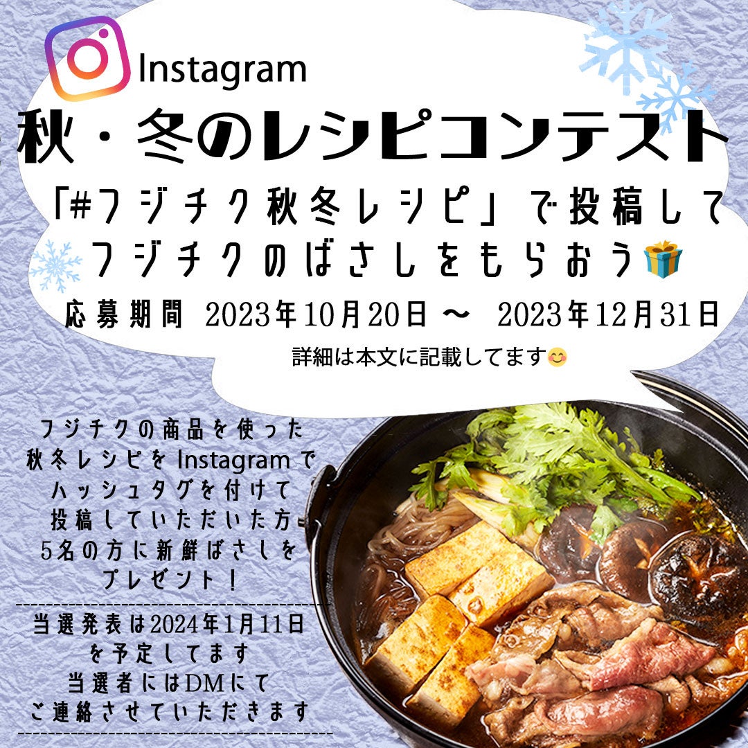 今回は秋冬のレシピを募集致します。フジチクの商品を使ったレシピを大募集!馬肉でも、牛肉、燻製商品など多種多様にあるレシピをフォロワーから募集します!