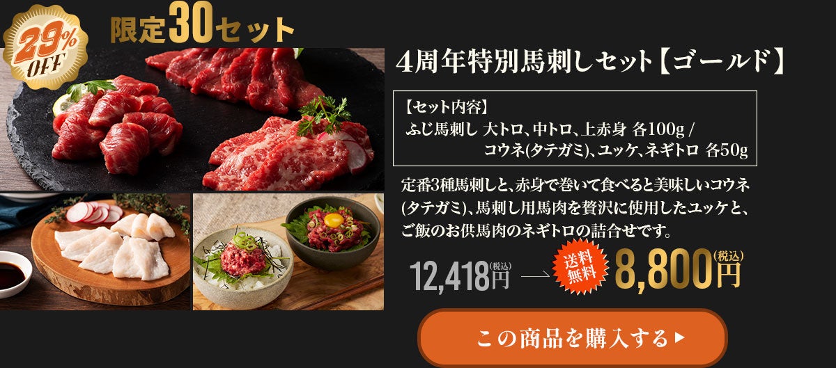 馬刺しの販売をしているフジチクオンラインショップ(URL:https://www.fujichiku-shop.jp/ )が開設して4周年を迎えます。