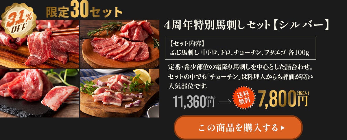 ・定番商品や霜降り馬刺し、希少部位などを含めた限定セットを数量限定、特別価格で販売します!