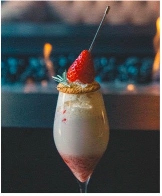 つぶつぶ感が癖になるいちごソースの酸味とやさしいミルクの甘みが絶妙なmuschで大人気のメニューです。グラスのトップには大きないちごとクッキー、マシュマロがトッピングされていて写真映えも抜群です。ここでしか楽しめない、贅沢で飲みごたえのある一品をお楽しみいただけます。