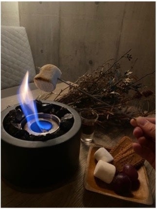 マシュマロやいちごがセットになった焼きマシュマロセットは、その場の雰囲気を盛り上げること間違いなし。本物のミニ暖炉でマシュマロを焼き、クッキーやいちごと一緒に食べる体験は特別感を演出します。おしゃれな店内で、非日常をお楽しみください。