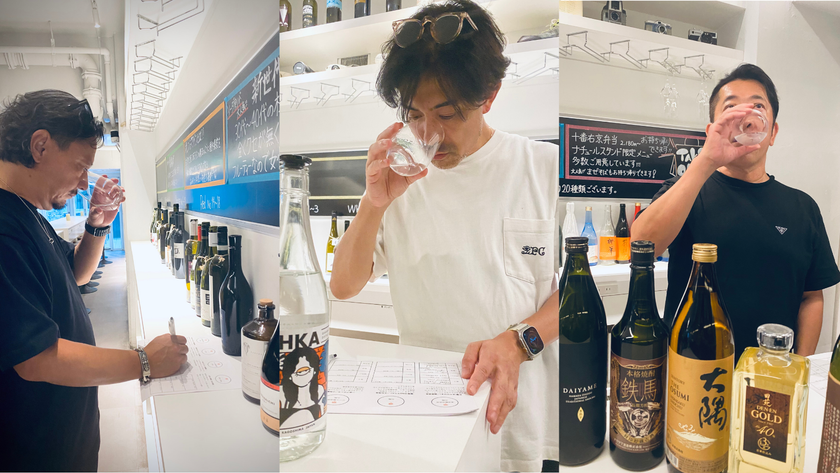 9月某日、今までの焼酎のイメージを覆す新しいムーブメントになったクラフト感溢れる“フレーバー焼酎”を、本田直之氏、イベント開催店を運営する十番右京グループオーナー 岡田右京氏、ワインテイスター/ソムリエ 大越基裕氏が中心となって事前に試飲会を開催し、「いま、これがおもしろい!注目の銘柄 15蔵」を、厳選しました。