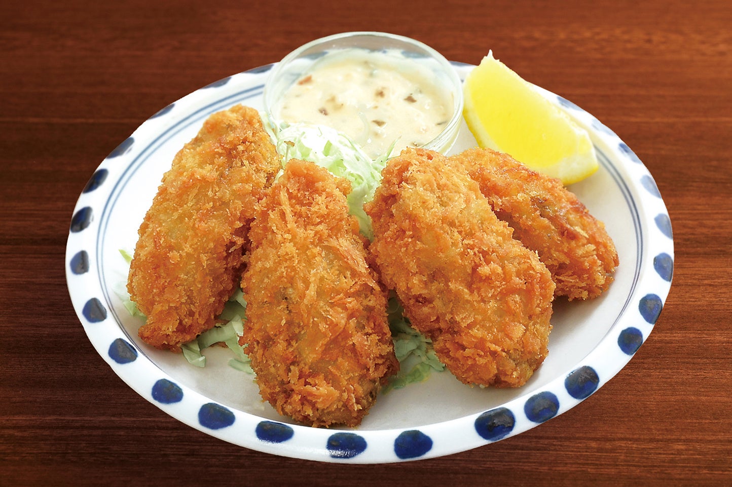 外はサクッとした口当たりの軽い食感、中は牡蠣の旨味を衣でぎゅっと閉じ込めることでジューシー、揚げたての牡蠣フライは絶品です。食感のコントラストをお楽しみください。