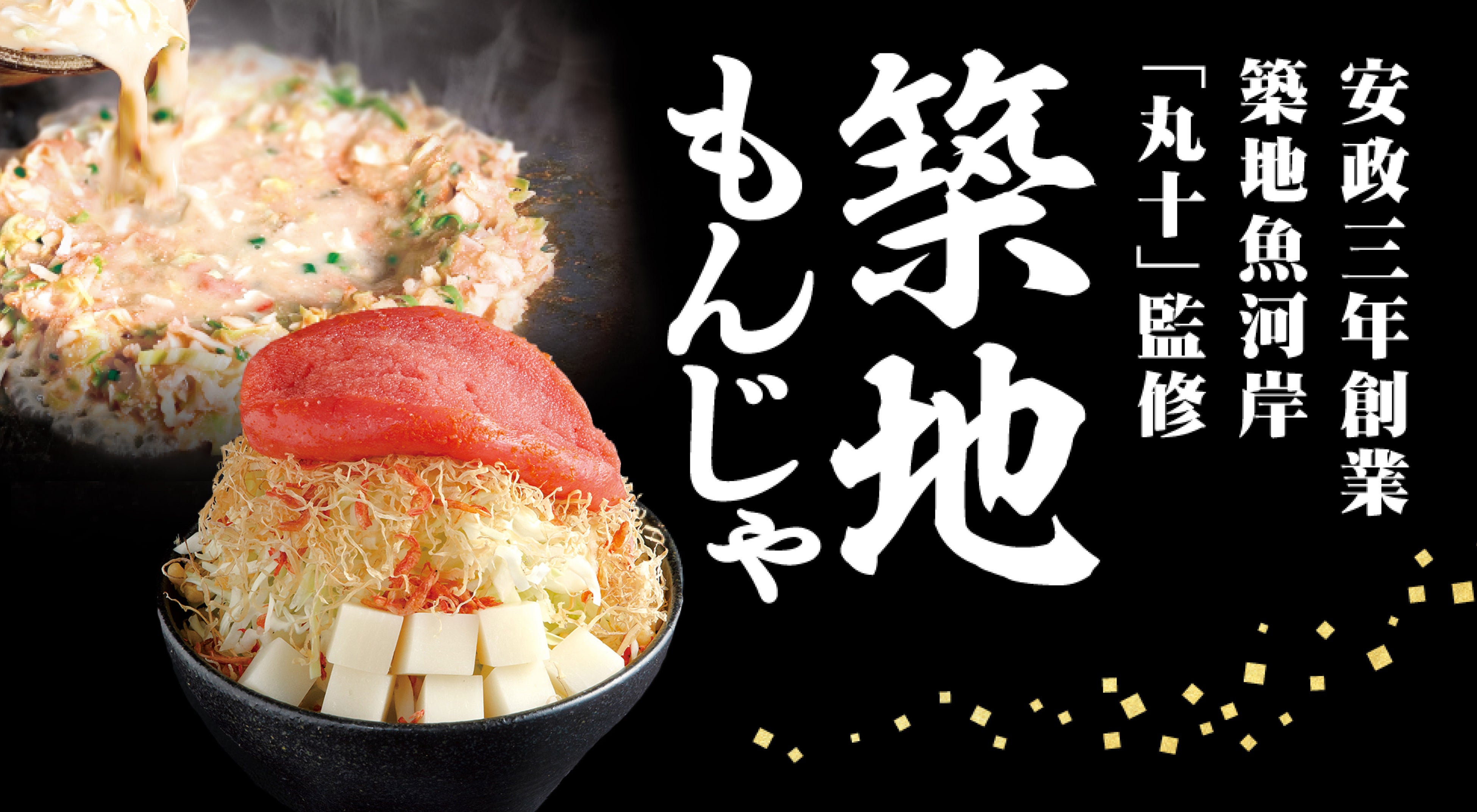 従来の「もんじゃ焼き」を昨年大幅にリニューアル。築地魚河岸より直送された新鮮なたらこをお店で丁寧に漬け込んだ自家製明太子、国産鶏がら、焼津産鰹節、国産真鯛・帆立エキスをブレンドした出汁を使用し、その革命的な美味しさは、多くのお客様からご好評いただいております。