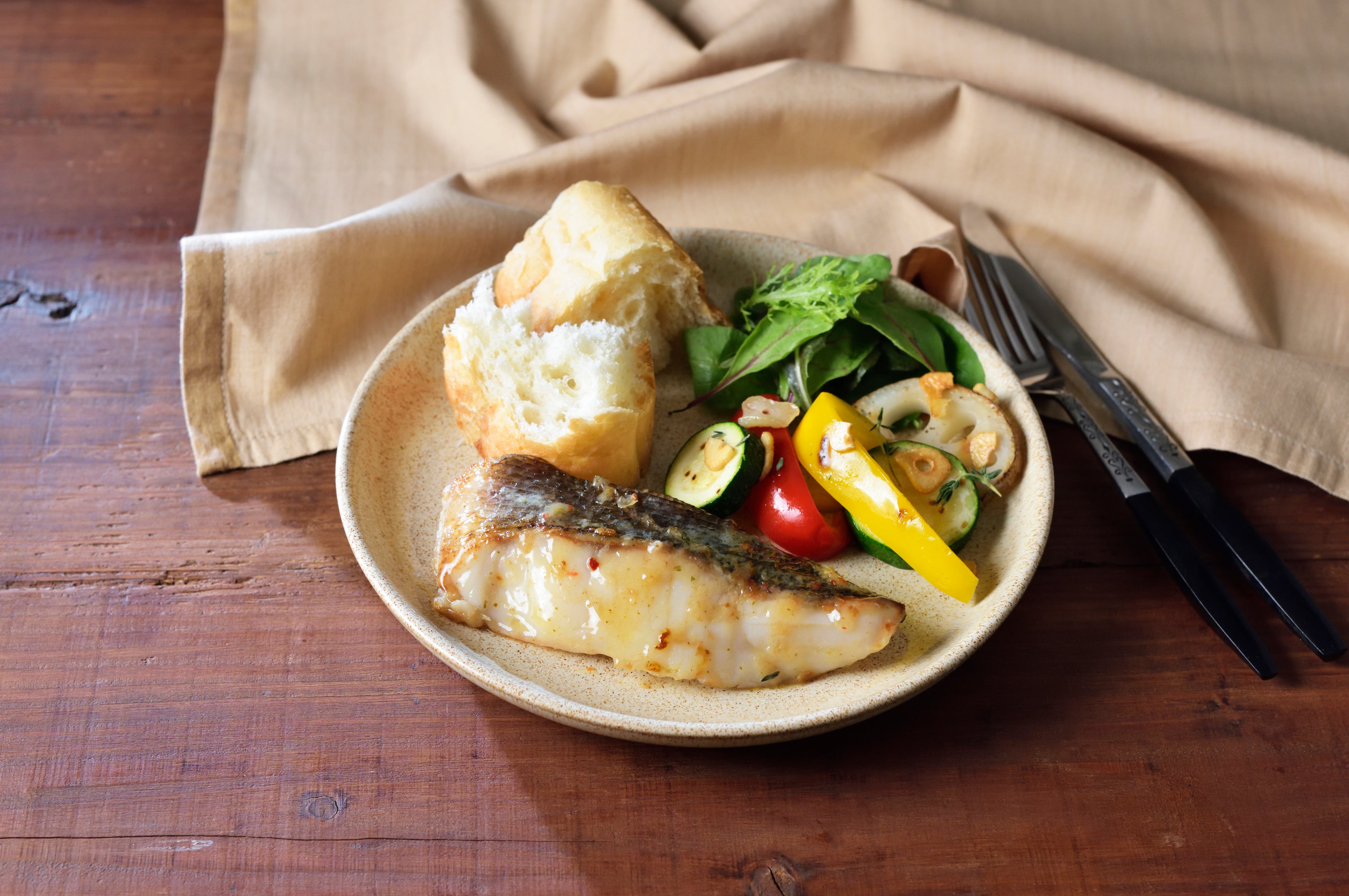 アカウオやギンダラを優先的に漁獲している船で、合わせて獲れるナガメヌケを使用しています。白身でくせがないナガメヌケを洋風ソースで味付けしました。