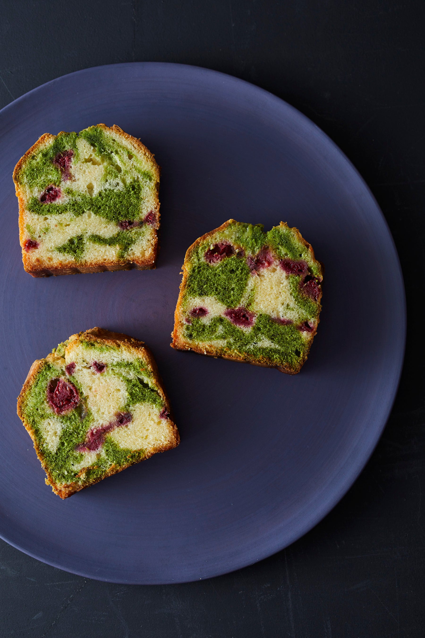 抹茶のマーブルとラズベリー