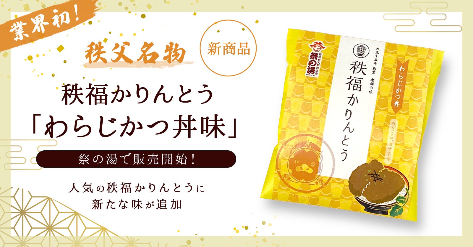 2017年のオープン以来、西武秩父駅前温泉 祭の湯内のちちぶみやげ市にて、MNHが商品開発に携わってきた「秩福かりんとう」。今回の一部商品のリニューアルに伴い、より秩父地方に馴染み深い商品を開発をしようと食材に選んだのが、秩父名物「わらじかつ」です。