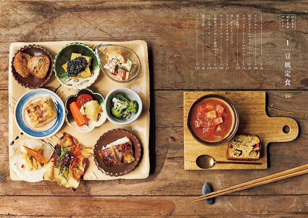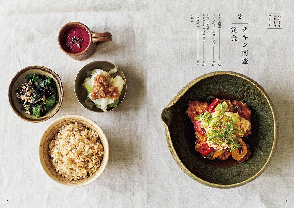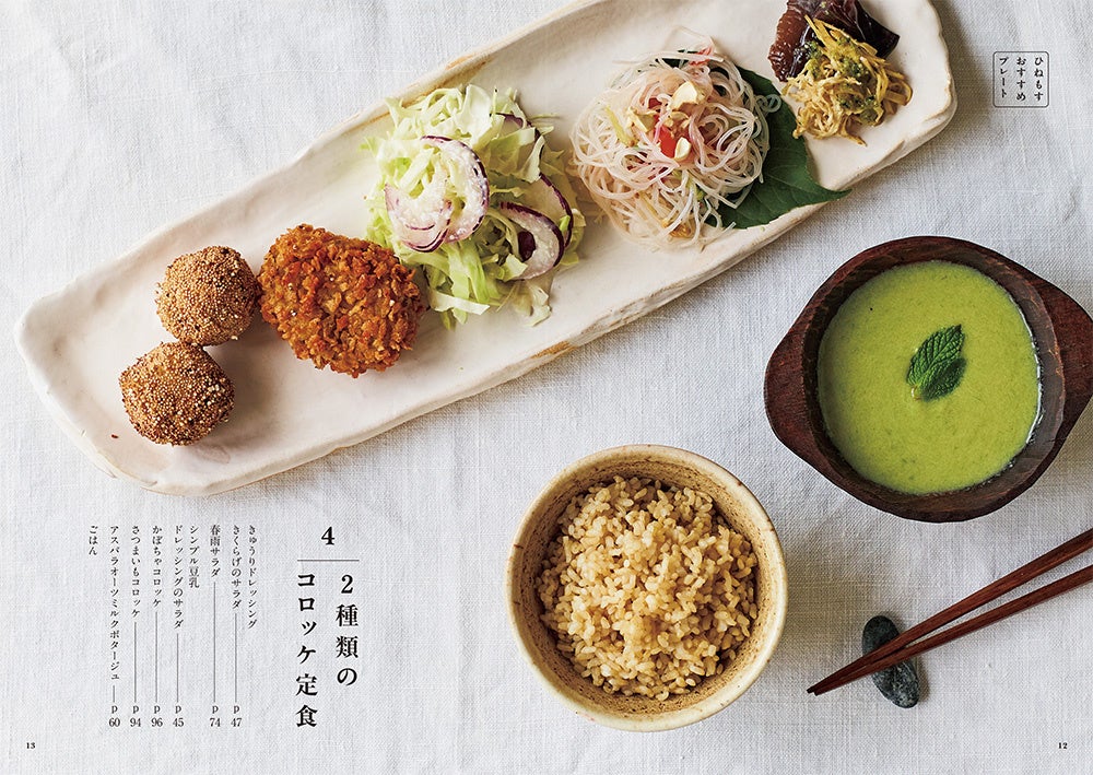 ●「ひねもす発酵研究所」ならではの、ちょっとたのしい一皿も紹介。たまねぎ麹を使ったケークサレ、えびカツライスバーガー、チーズフォンデュ、フォー、ベジテリーヌ、ガランティーヌ……などバラエティ豊かな19レシピです。