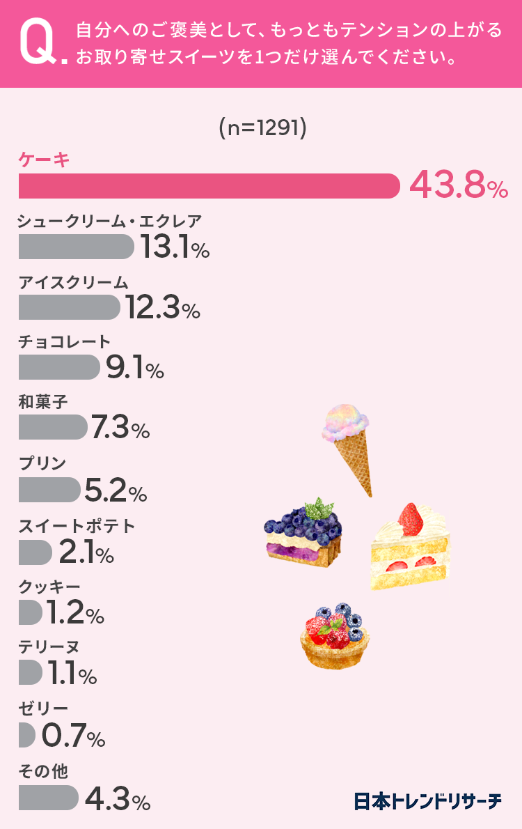 質問1:自分へのご褒美として、もっともテンションの上がるお取り寄せスイーツを1つだけ選んでください。