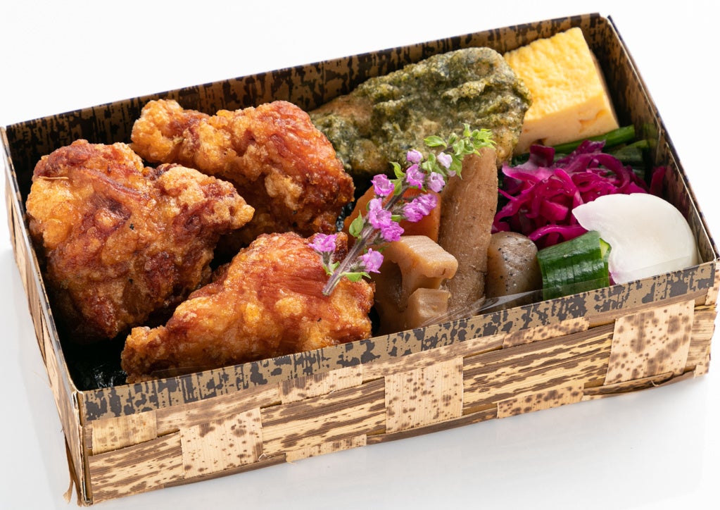 天皇献上米、幻のコシヒカリ「雪ほたか」を美味しくお召し上がりいただけるSALON GINZA SABOUのお弁当。メインのおかずには日本の食文化の定番「銀鮭の塩焼き」「唐揚げ」「銀鱈西京焼き」をラインアップし、一品ずつ丁寧に出汁を取り、下処理を行うことで素材の旨みを引き出しています。調味料に使用する糖分は白砂糖を抑え、羅漢果からとれる甘味成分を20%使用することでカロリーと糖質を抑え通常よりもヘルシーに仕上げています。