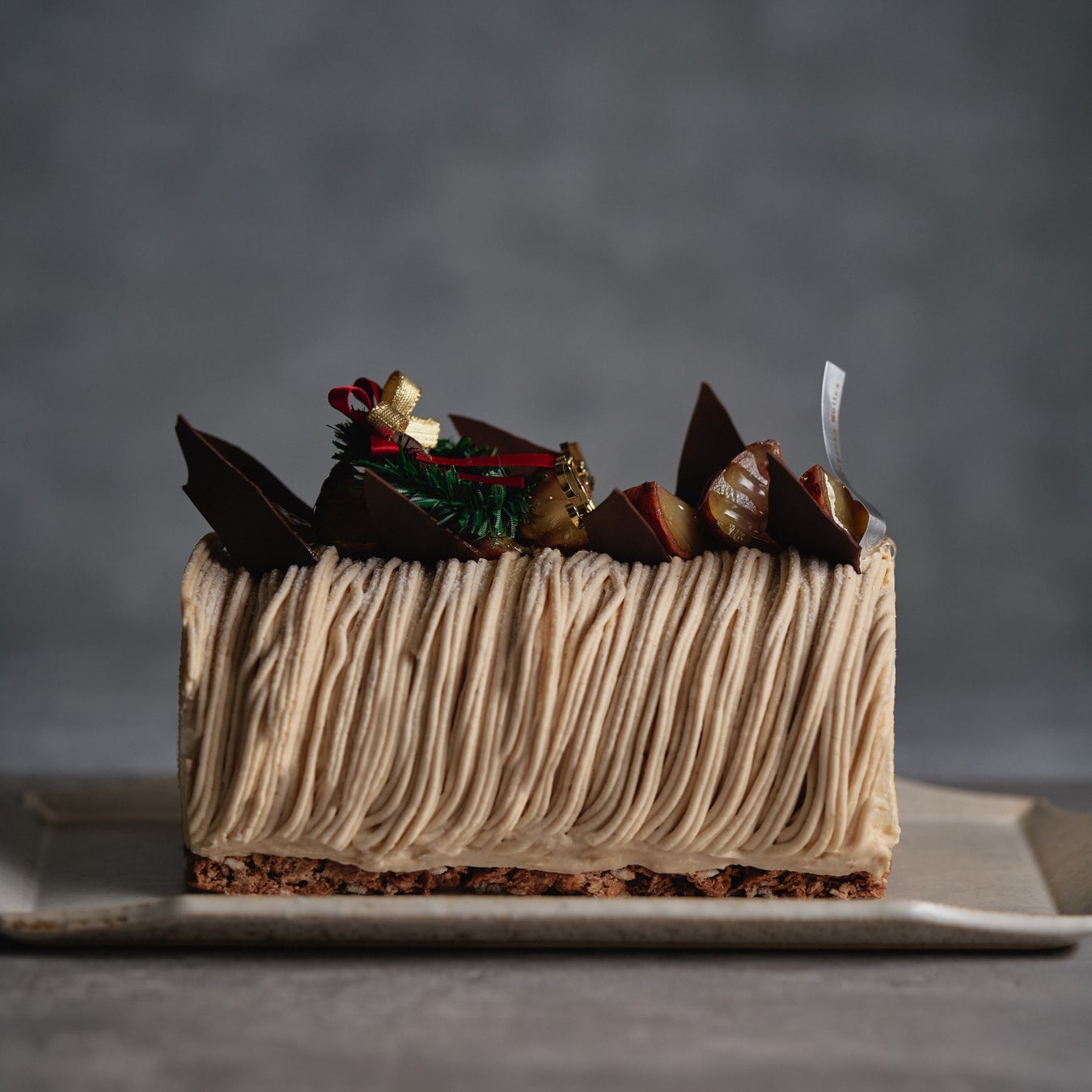 イタリア産マロンクリームで仕上げたクリスマス限定のモンブランロールケーキ。