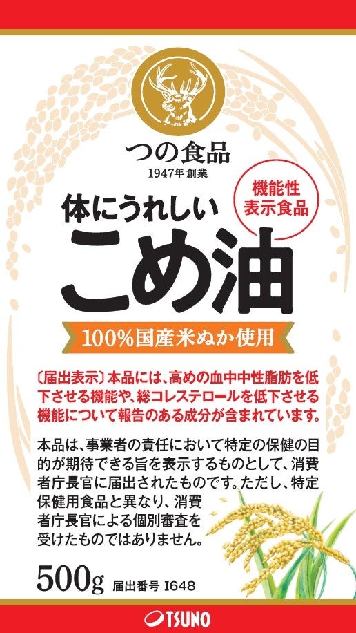 築野食品工業株式会社(本社:和歌山県伊都郡 代表取締役社長 築野富美 https://www.tsuno.co.jp/)は、γ-オリザノールを機能性関与成分とした食用こめ油「体にうれしいこめ油」について機能性表示食品としての届け出をおこない、この度消費者庁で届け出が受理されました。