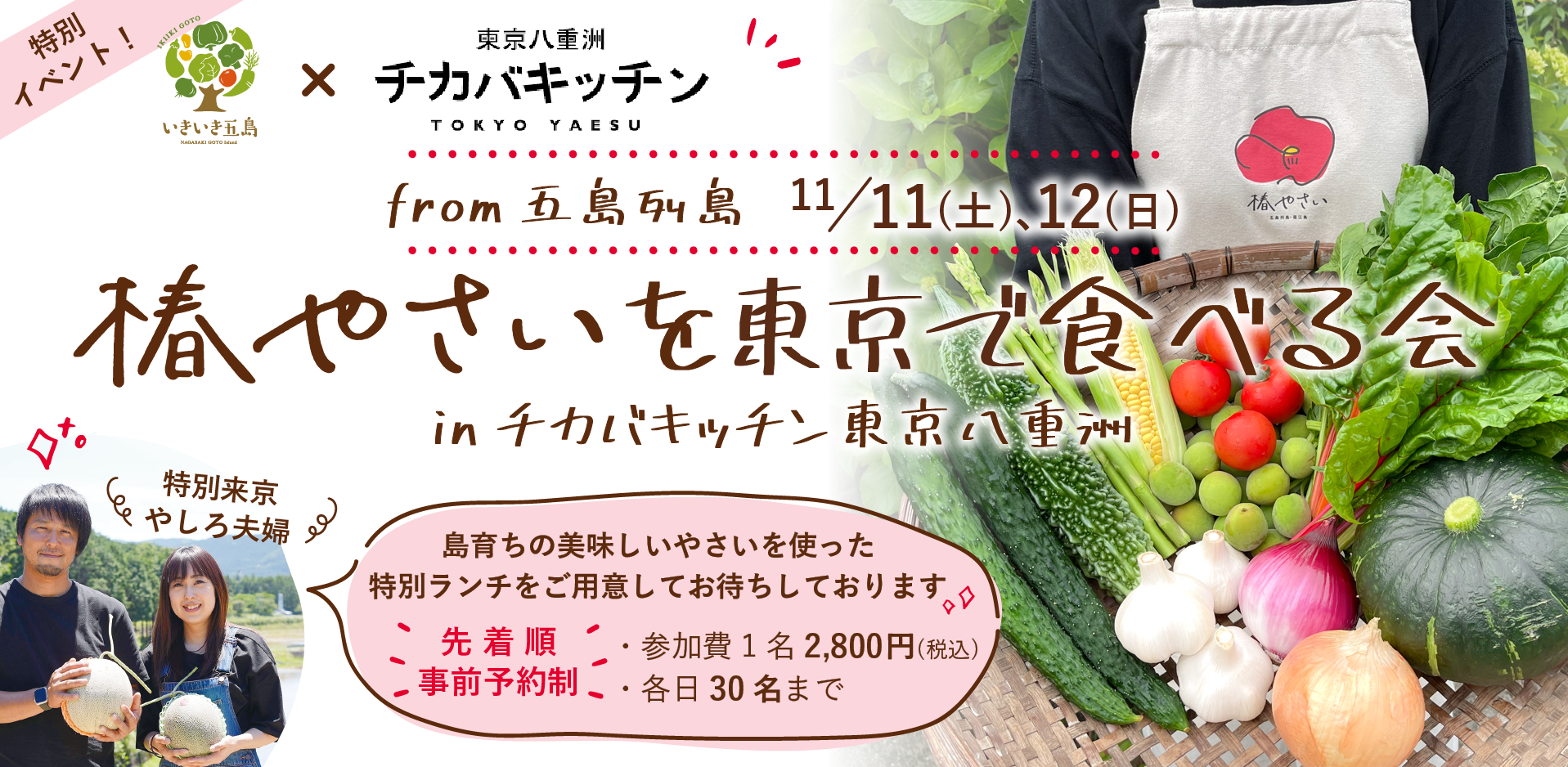 イベント当日は「いきいき五島」の経営者でもあり、五島で実際に野菜の生産・販売をしている八代夫妻が五島から来京し、「椿やさい」の栽培のこだわりや、椿の油かすを使った肥料の説明、都心だと中々気が付けない”旬の野菜の見分け方”などのワークショップを実施します。