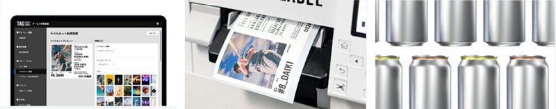 「TAG LIVE LABEL」は、専用のラベルシステムを用いることで、導入先の企業様が保有するコンテンツやその場で撮影した写真を飲料ラベルとして出力することができ、その日、その場所だけの特別な1本をファンに向けて販売することを可能にする新しいサービスです。