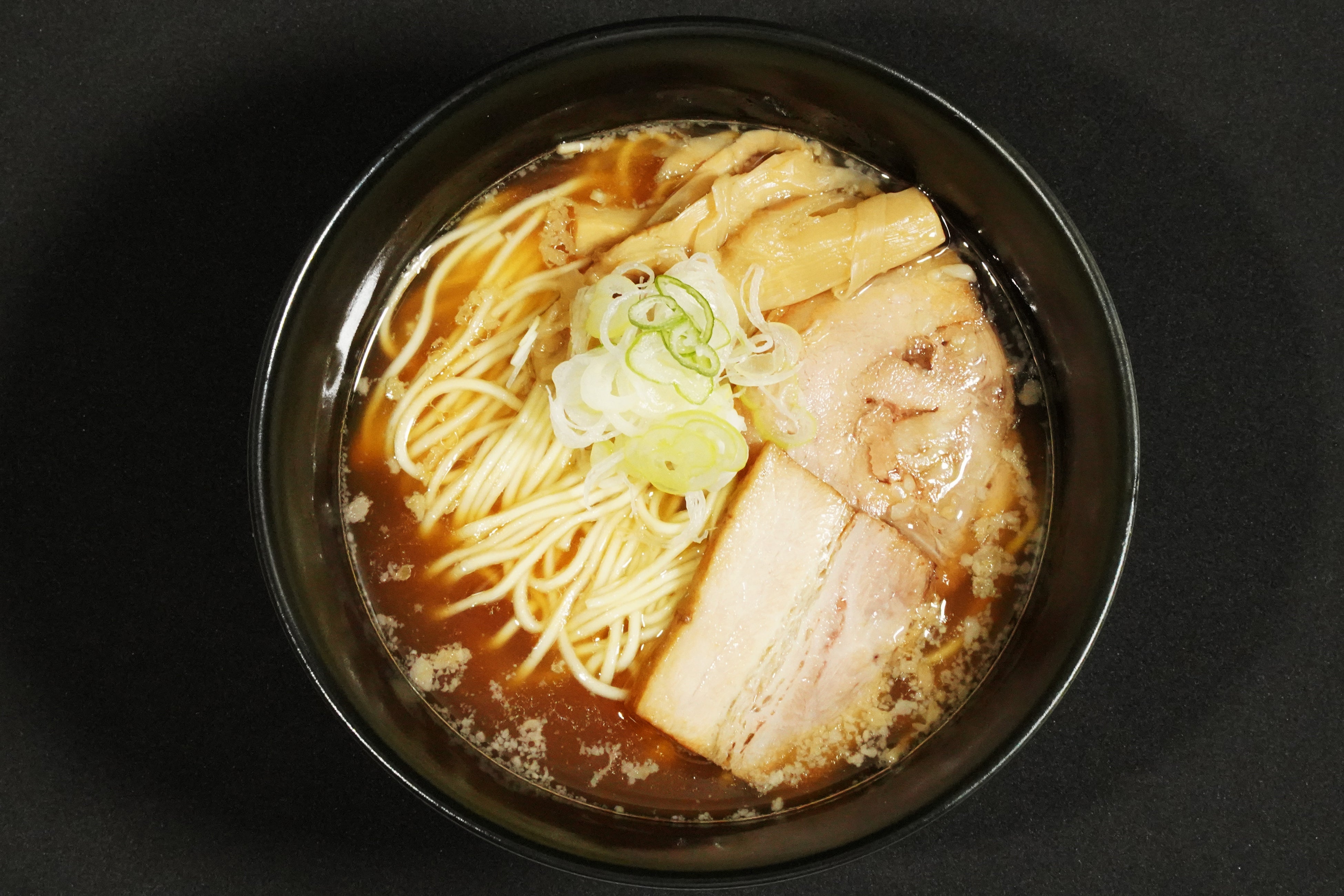 丸鶏を使った鶏ガラスープに特製醤油タレと鯖・鰹の魚介タレと焼きあごの香味油をブレンドしたオリジナルスープ