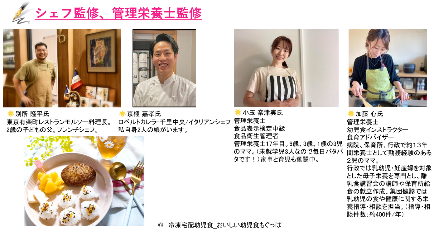 ・シェフ監修、管理栄養士監修 ※皆様、お子様育児中の現役ママパパです。