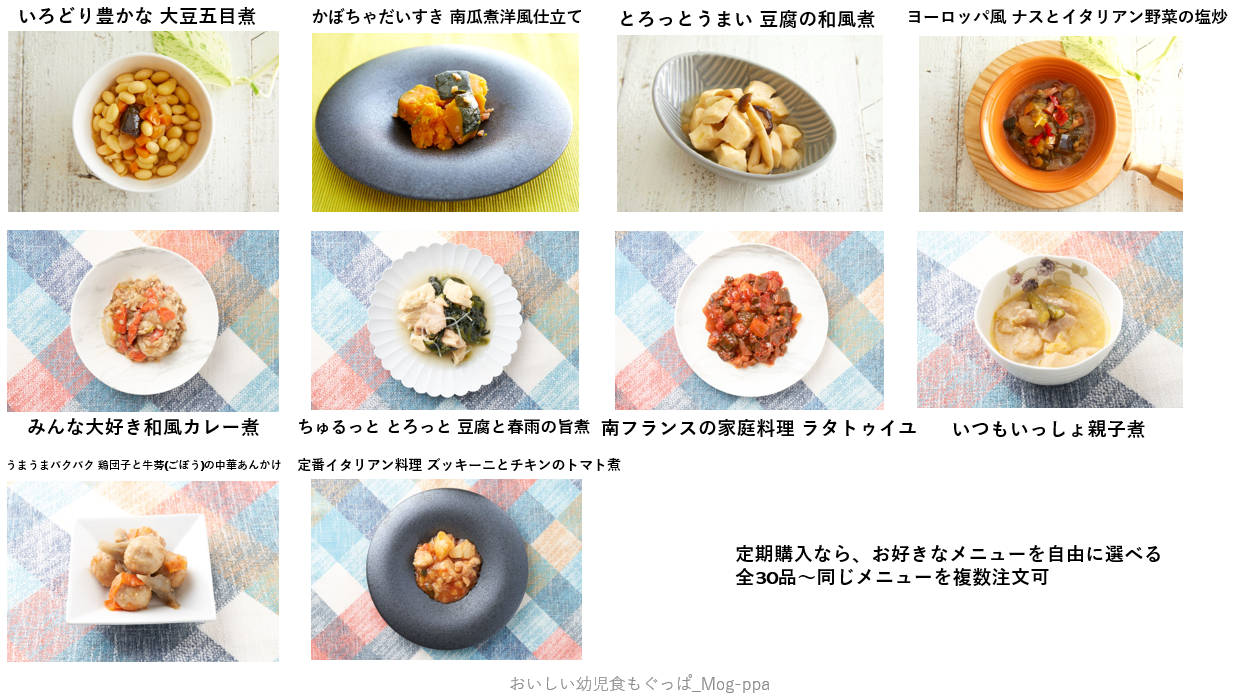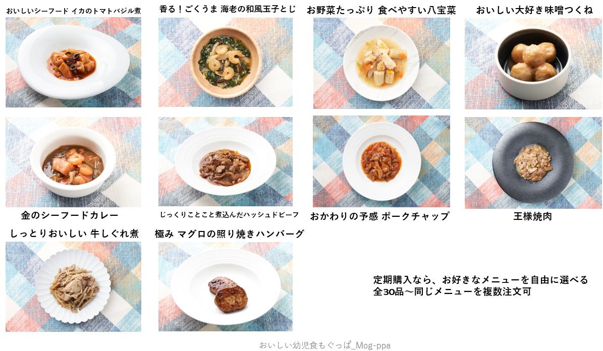 ・冷凍宅配幼児食「おいしい幼児食もぐっぱ」メニューラインナップ