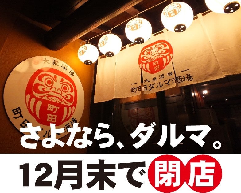 株式会社MountainBull(マウンテンブル、本社東京都西新宿/代表取締役 田中勇史郎)が運営する『町田ダルマ酒場』が、12月末での閉店を前に、感謝の気持ちを込めて特別価格での飲み放題を提供します。