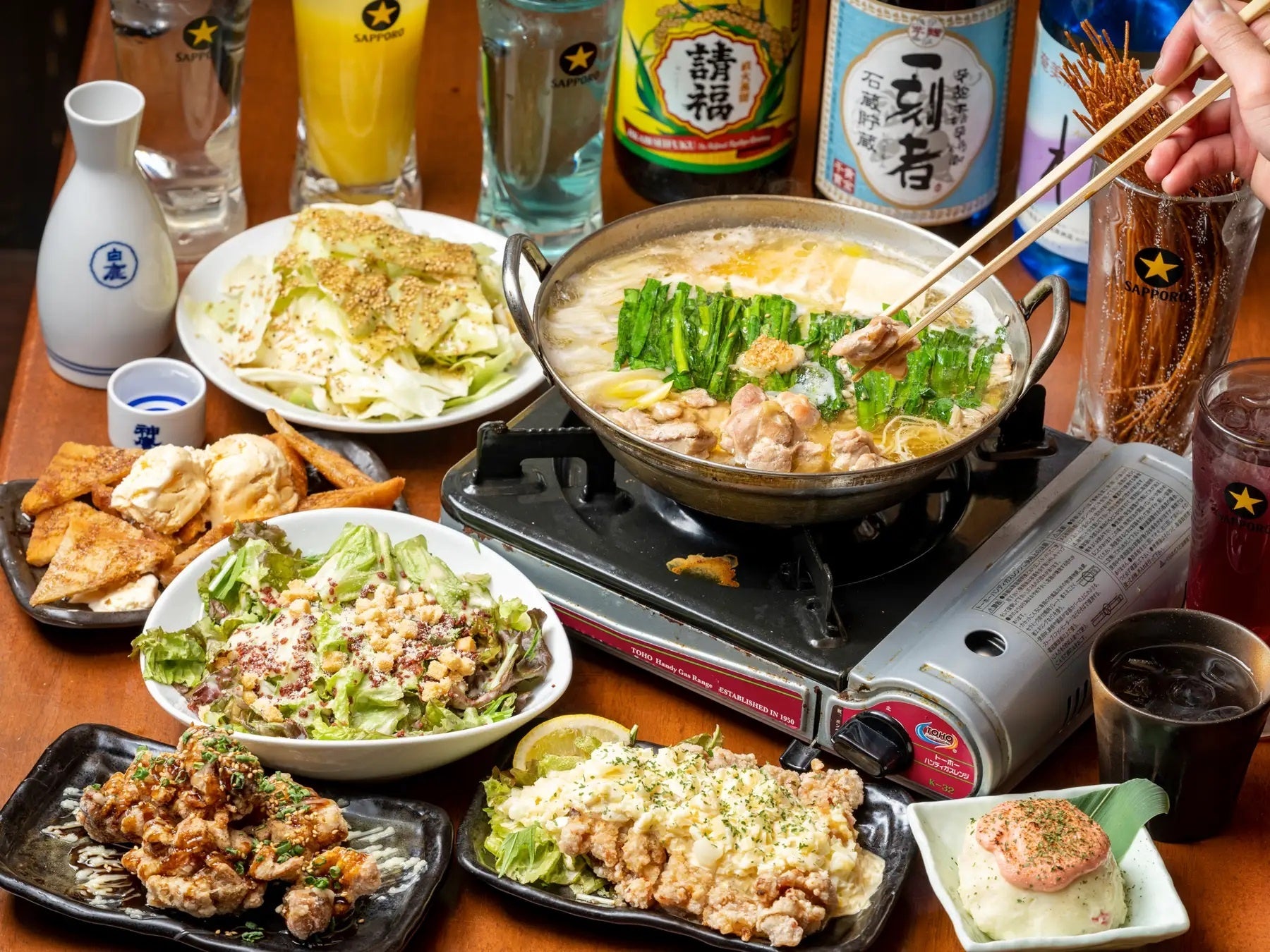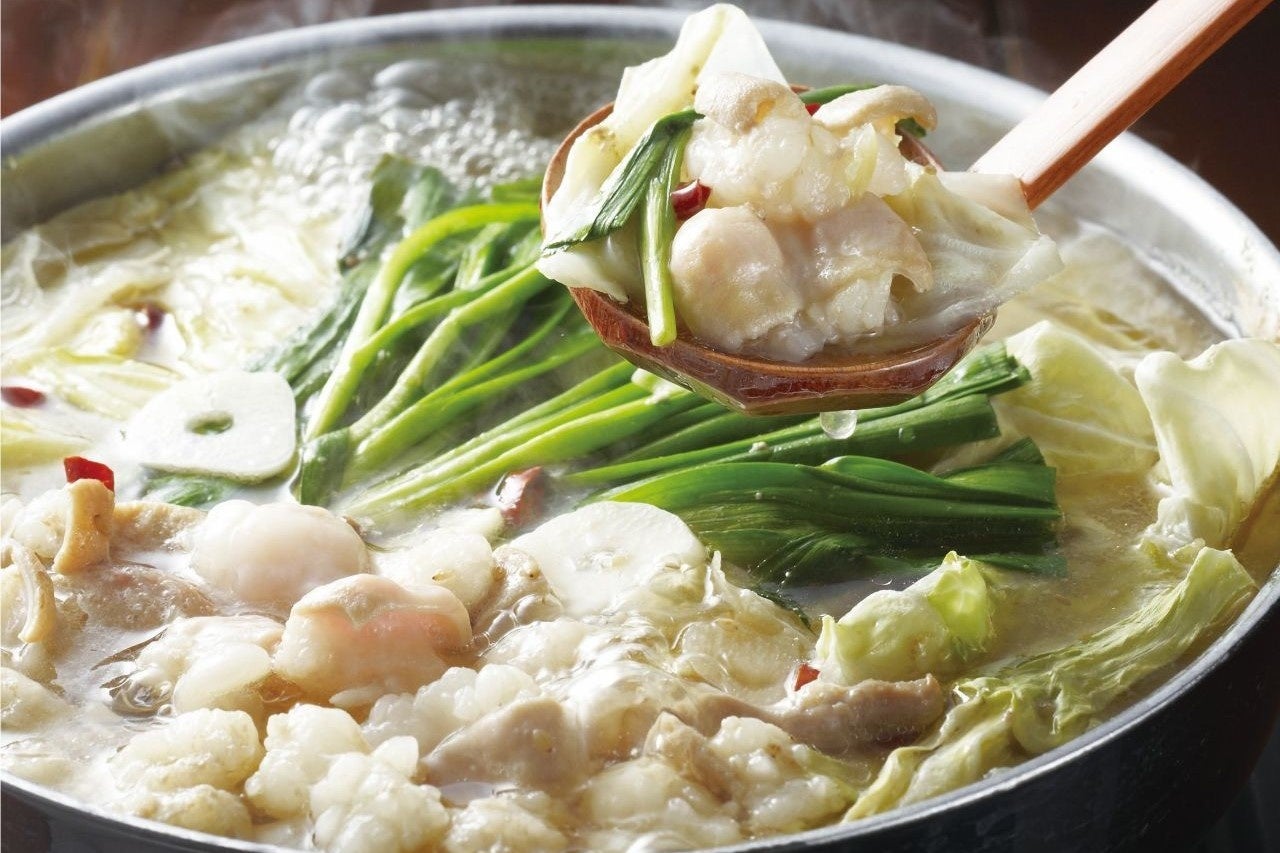 名物はプリプリのもつを使用したもつ鍋。6時間以上煮込み旨みを凝縮し、こだわり抜いた極上スープ。煮込み続けることによって旨みが凝縮され、各種具材を惹き立たせます。