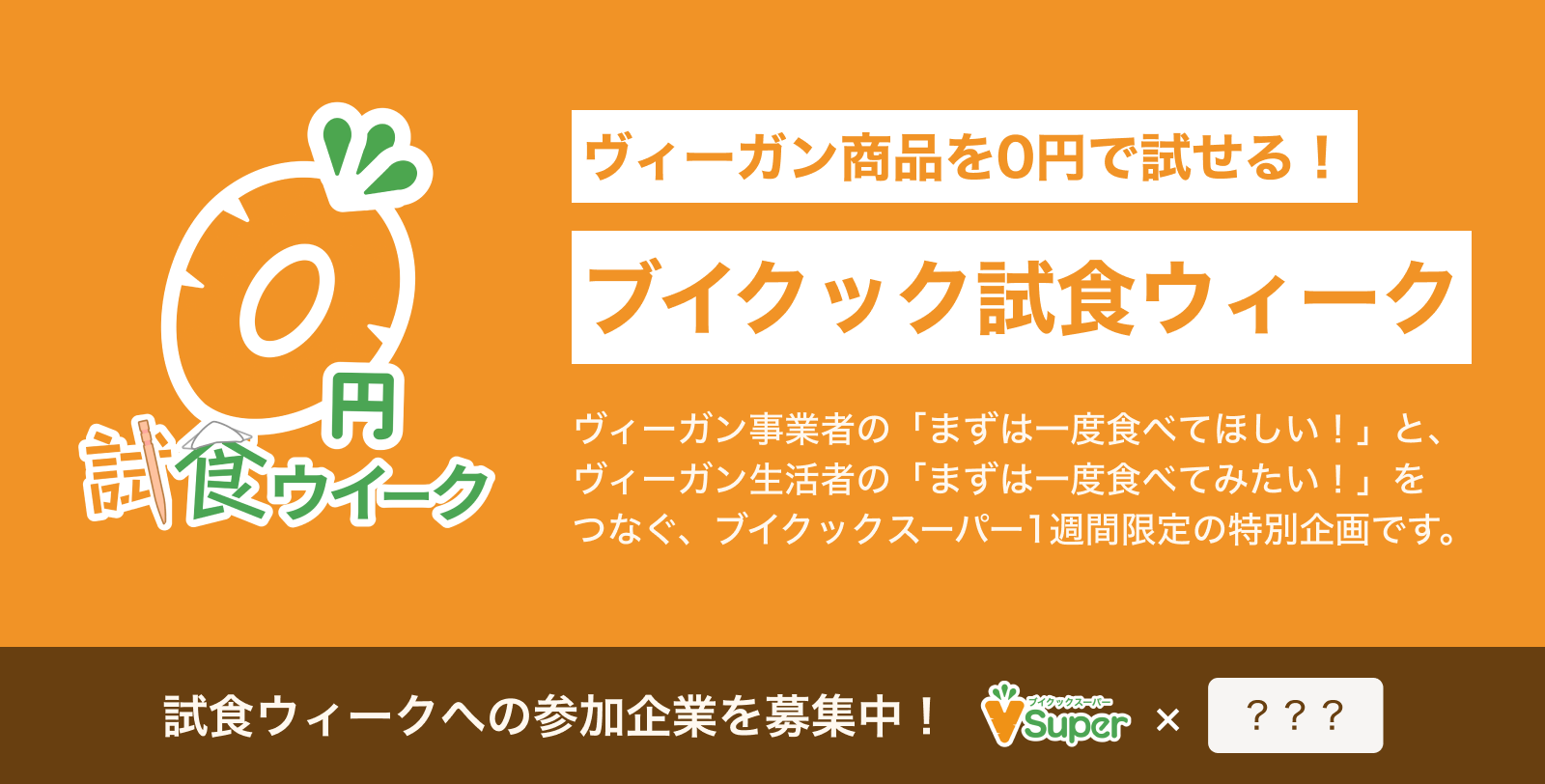 ヴィーガン商品を0円で試せる「ブイクック試食ウィーク」第1弾。