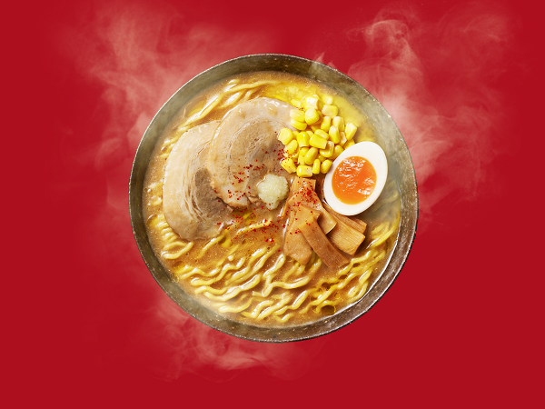 天地返し製法の北海道醸造味噌2種、信州味噌1種を合わせた深みとコク。さらに、野菜、肉類を炒めた旨みとコクが加わり、圧倒的に濃厚な味噌感と旨味に満ち溢れています。本場札幌味噌ラーメンのような、透明感のある冴えた黄色みの風味が強い麺は、プリッとした食感が楽しめます。