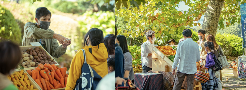 国内でも数少ない広大な風景式庭園や自然観察フィールド、温室等を有し、近隣住民の憩いの場、都内有数の観光名所として多くの方に親しまれています。また、日本を代表するすぐれた自然の風景地を保護と、観賞など自然に親しむ利用を目的とした全国34カ所にある国立公園の魅力発信として、近隣の肥沃な土壌で育ち美味しい野菜でありながらも、規格外となり流通に乗らないなどの野菜を用いたマルシェを10月の食品ロス削減月間において、フリフルと新宿御苑内にあるアップサイクルをコンセプトにしたカフェNational Parks Cafe「Under the Tree」とのコラボで実施します。