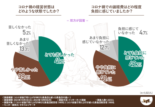 飲食店経営者の約8割がコロナ禍の飲食店経営は苦しかったと回答しました。